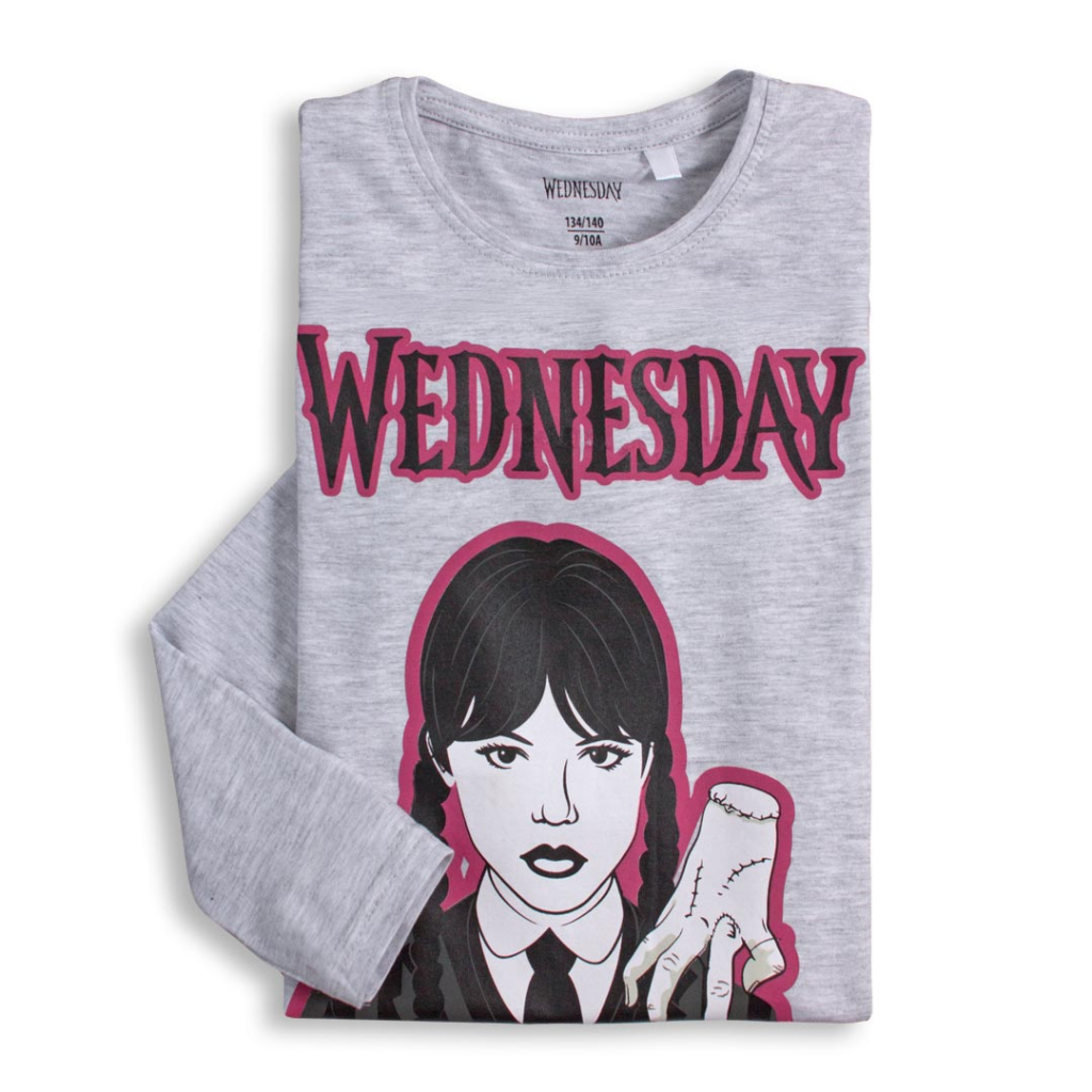 Dievčenské tričko s dlhým rukávom, s obrázkom WEDNESDAY z amerického mysteriózneho seriálu.Dodatočné parametre