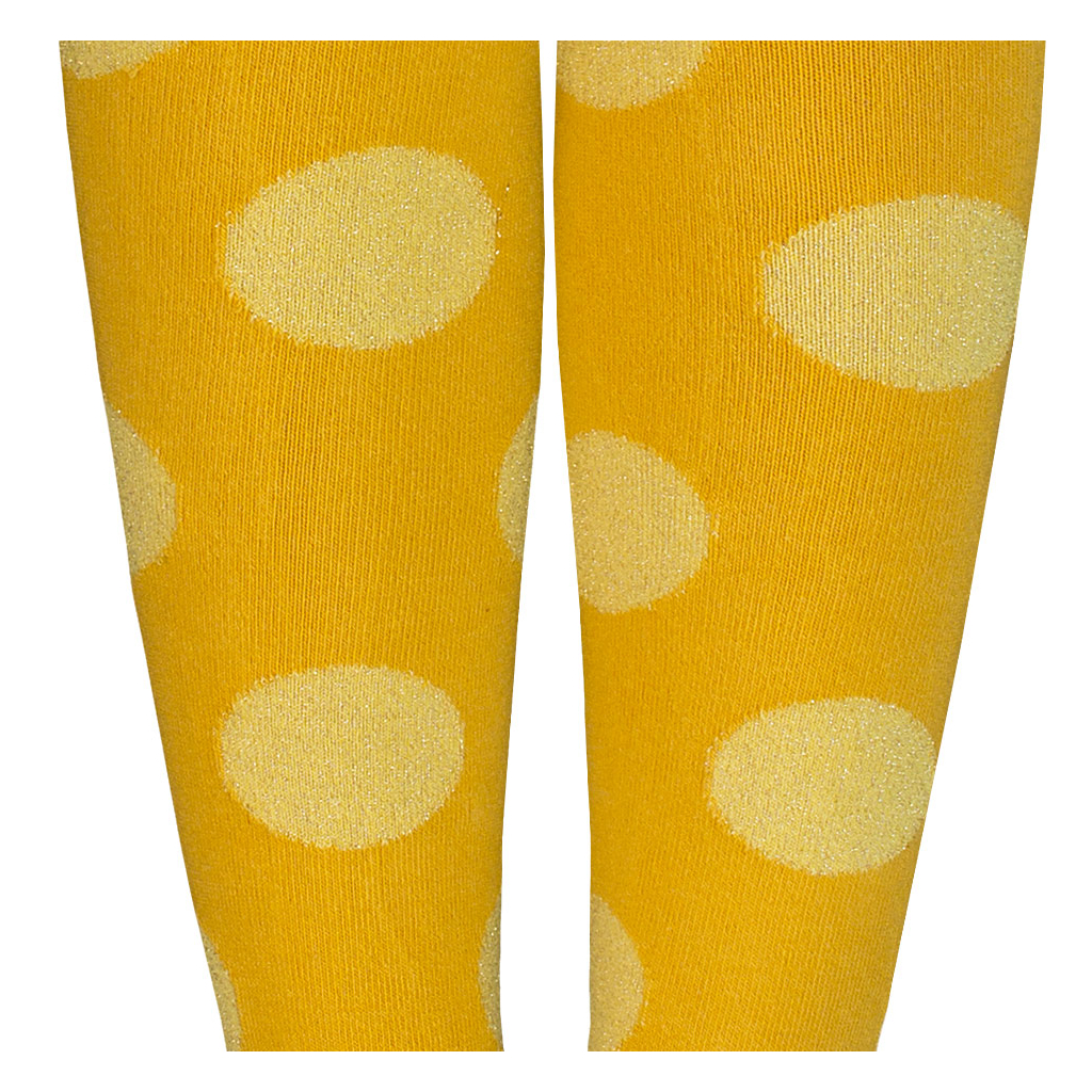 Detské pančuchy s bodkami s lesklou nitkou. Príjemné materiálové zloženie, pančuchy sú elastické a výborne držia tvar. Certifikát OEKOTEX100, class 1.