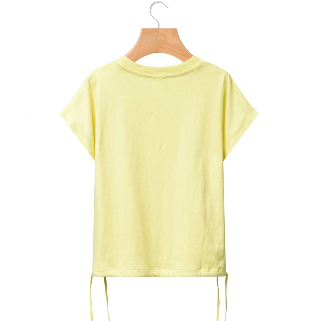 Dievčenský crop top s potlačou. Voľnejší strih bez vsadeného rukávu. Dole možnosť stiahnutia šnúrkami. Bavlnený úplet.Dodatočné parametre
