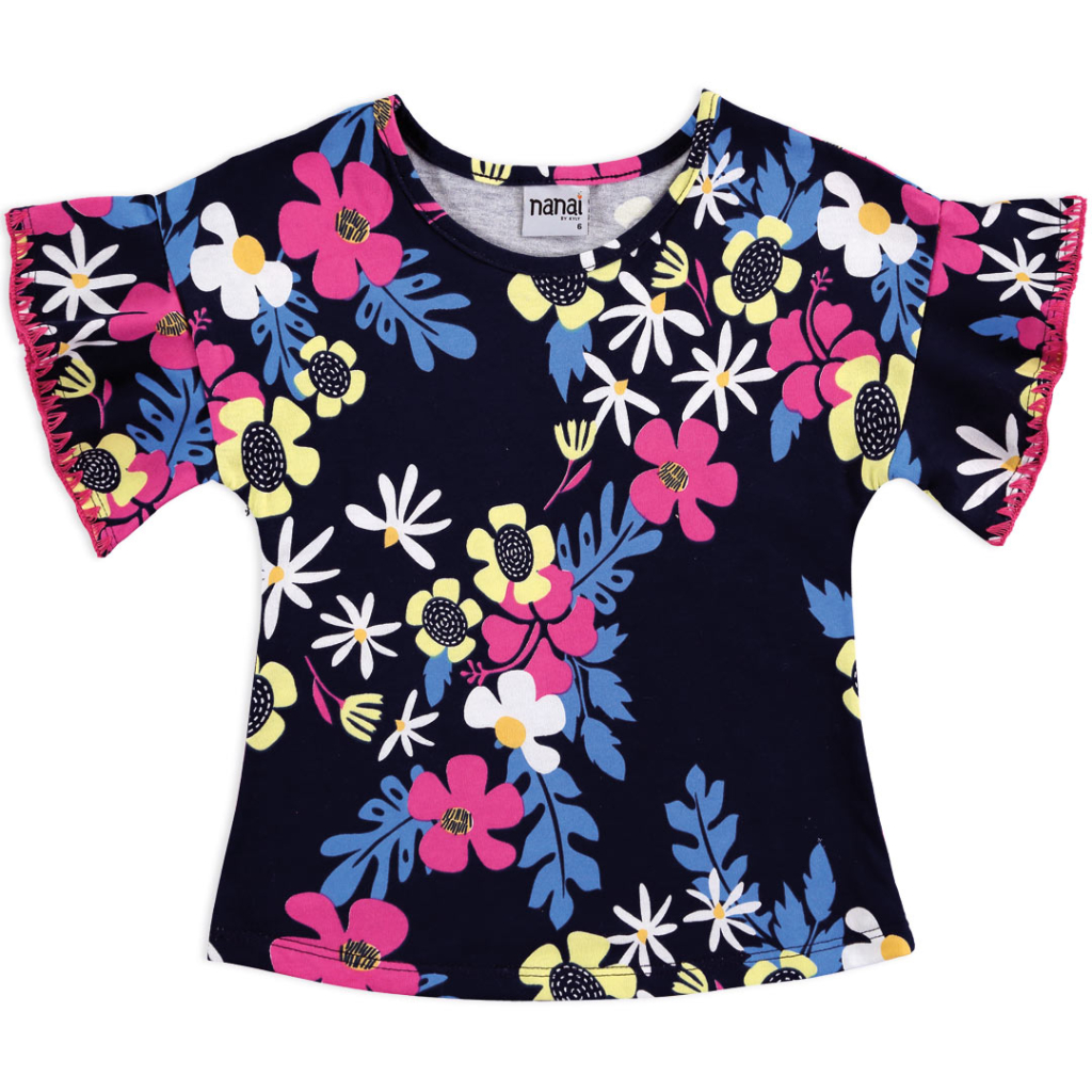 Dievčenský top s krátkym rukávom. Brazílska značka NANAI. Farebná potlač kvetín. Pružný bavlnený úplet.Dodatočné parametre