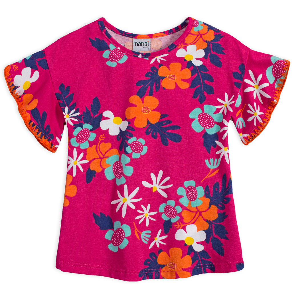 Dievčenský top s krátkym rukávom. Brazílska značka NANAI. Farebná potlač kvetín. Pružný bavlnený úplet.Dodatočné parametre