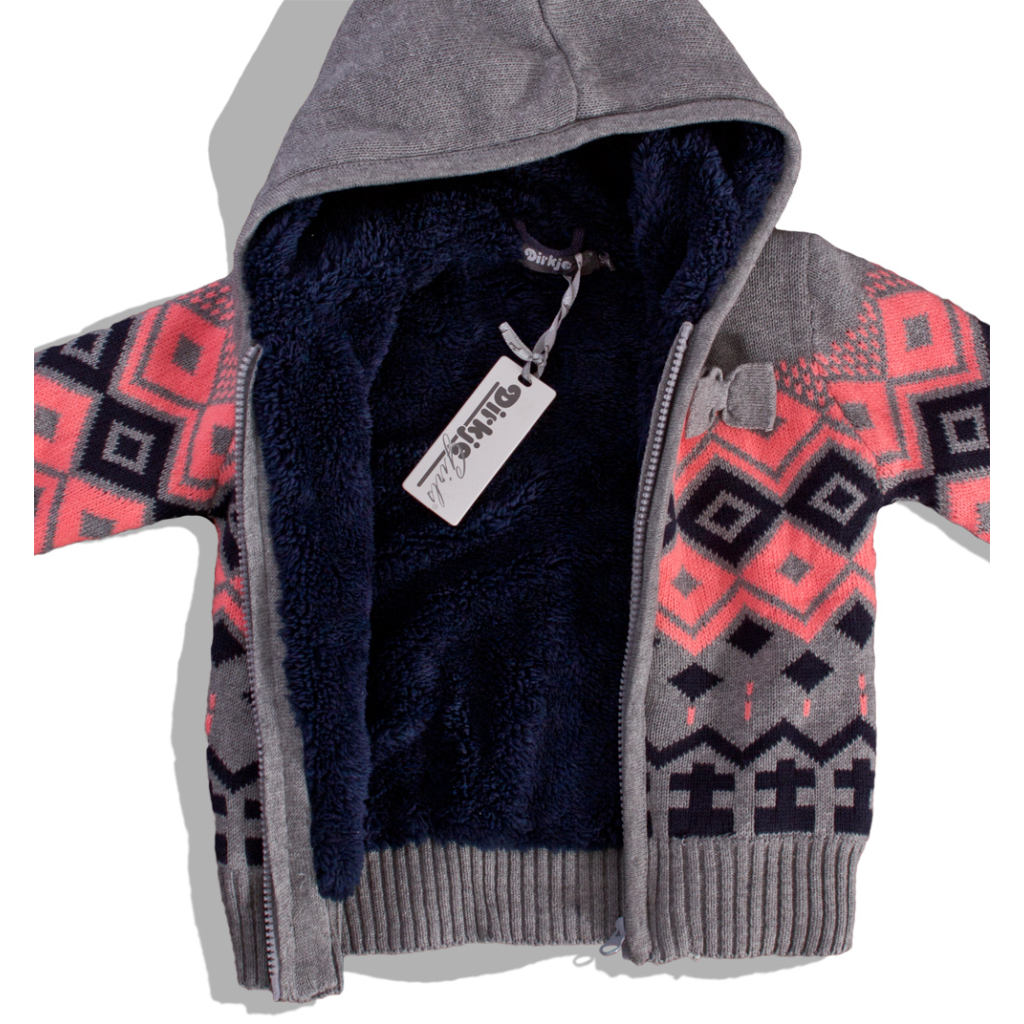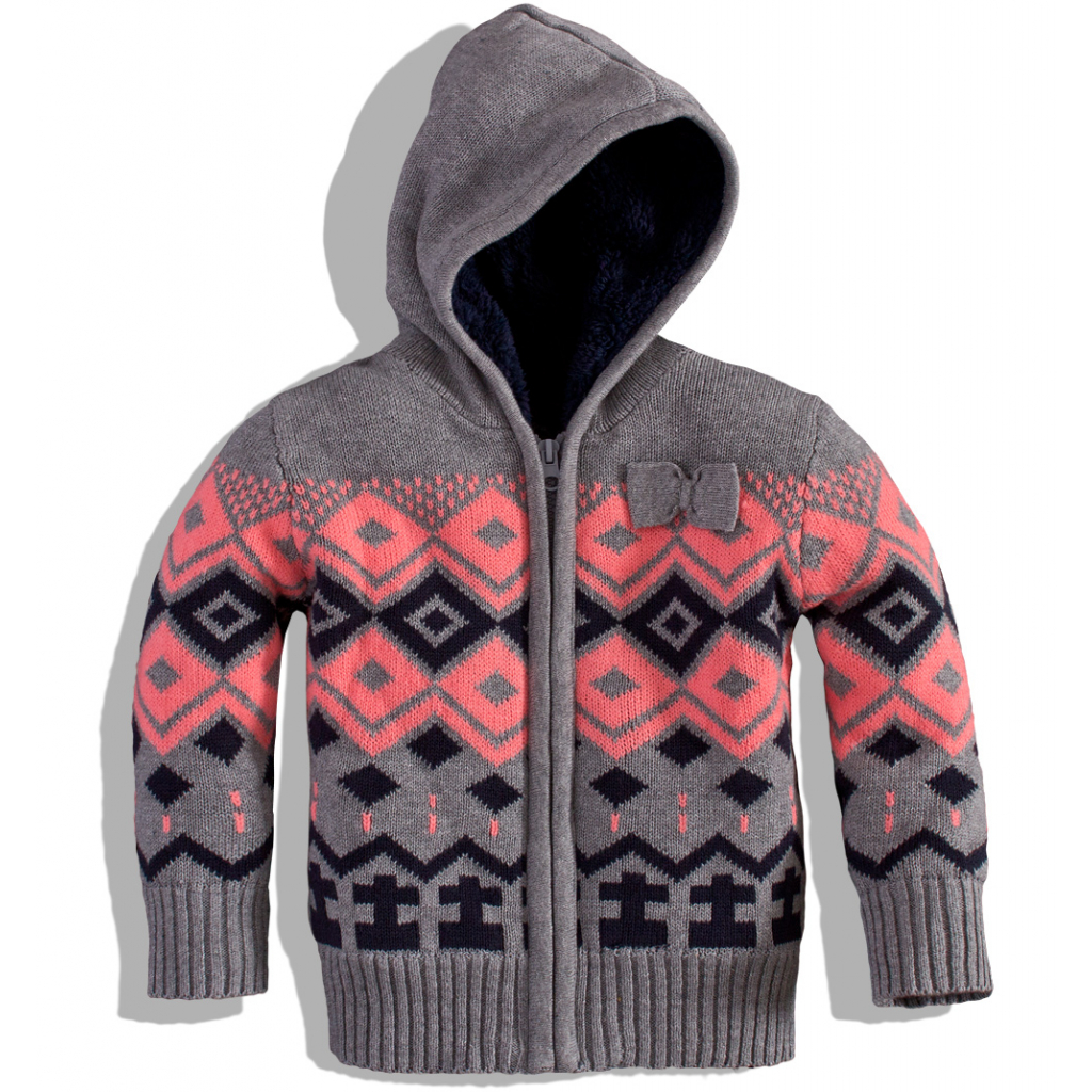 Dievčenský zateplený sveter na vonkajšie nosenie, telo a kapucňa podšité hrejivou kožušinkou. Zapínanie na zips, našitá mašlička. Príjemný, hrejivý, mäkký materiál.Dodatočné parametre