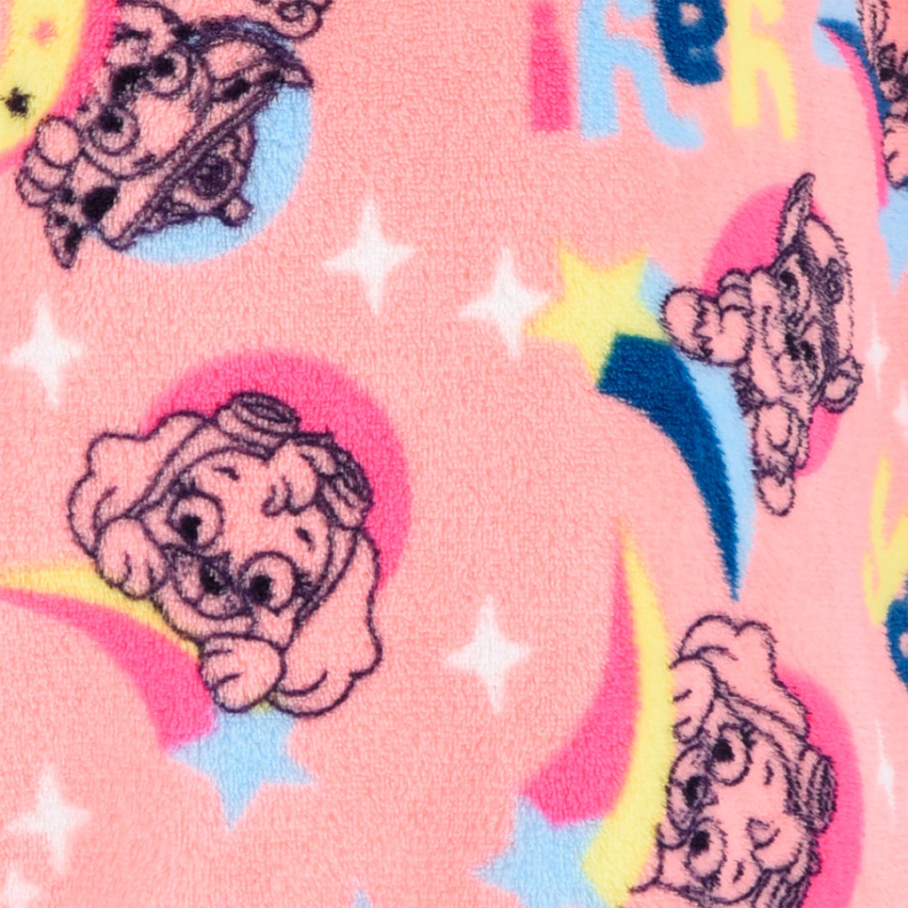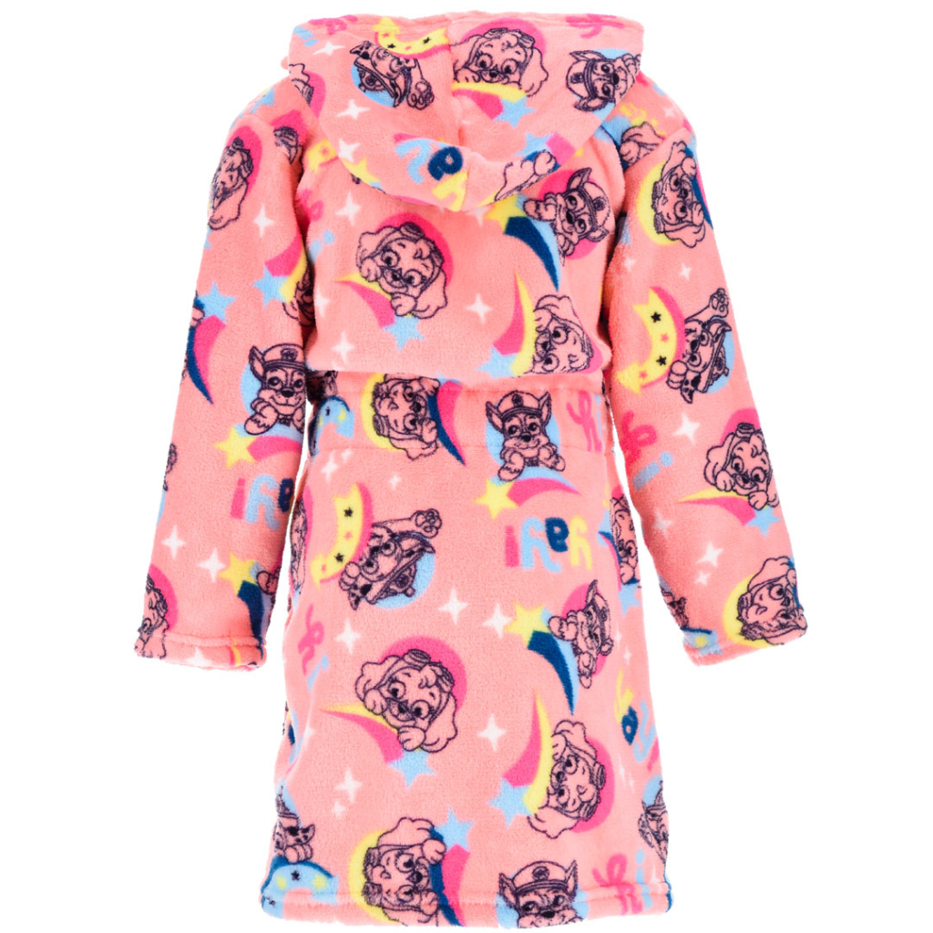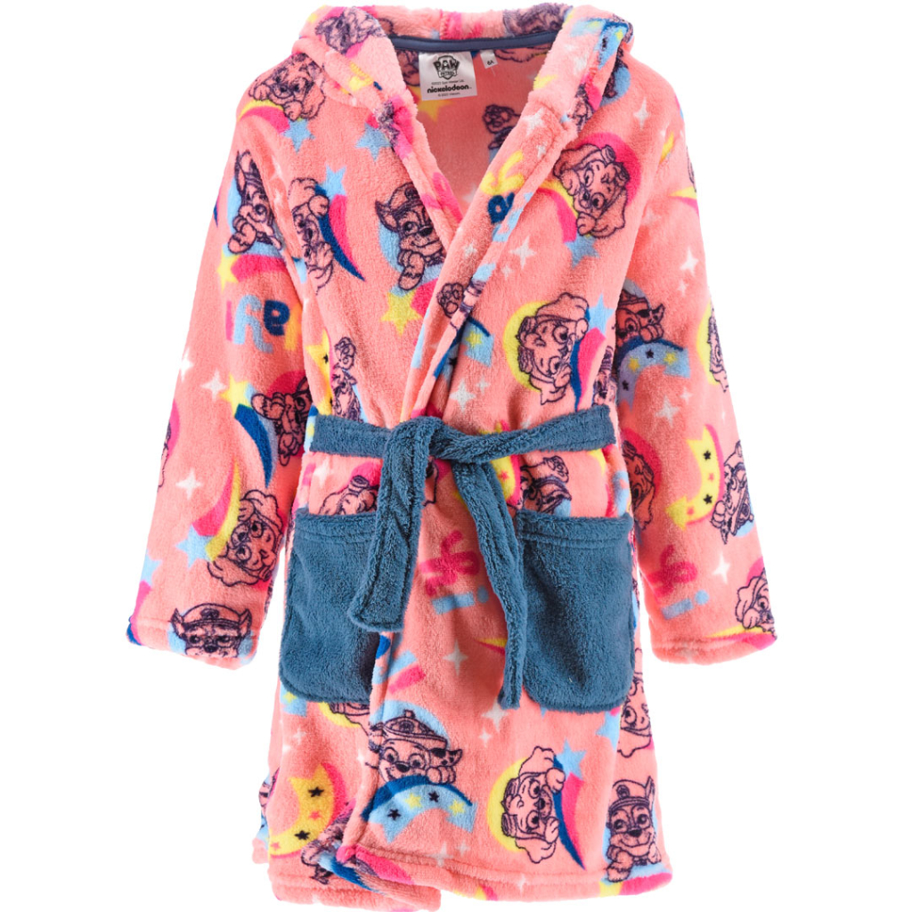Dievčenský župan s motívom Labkovej Patroly. Jemný, hebký materiál. S kapucňou, vreckami, opasok všitý na bokoch. V zadnej časti guma.Dodatočné parametre