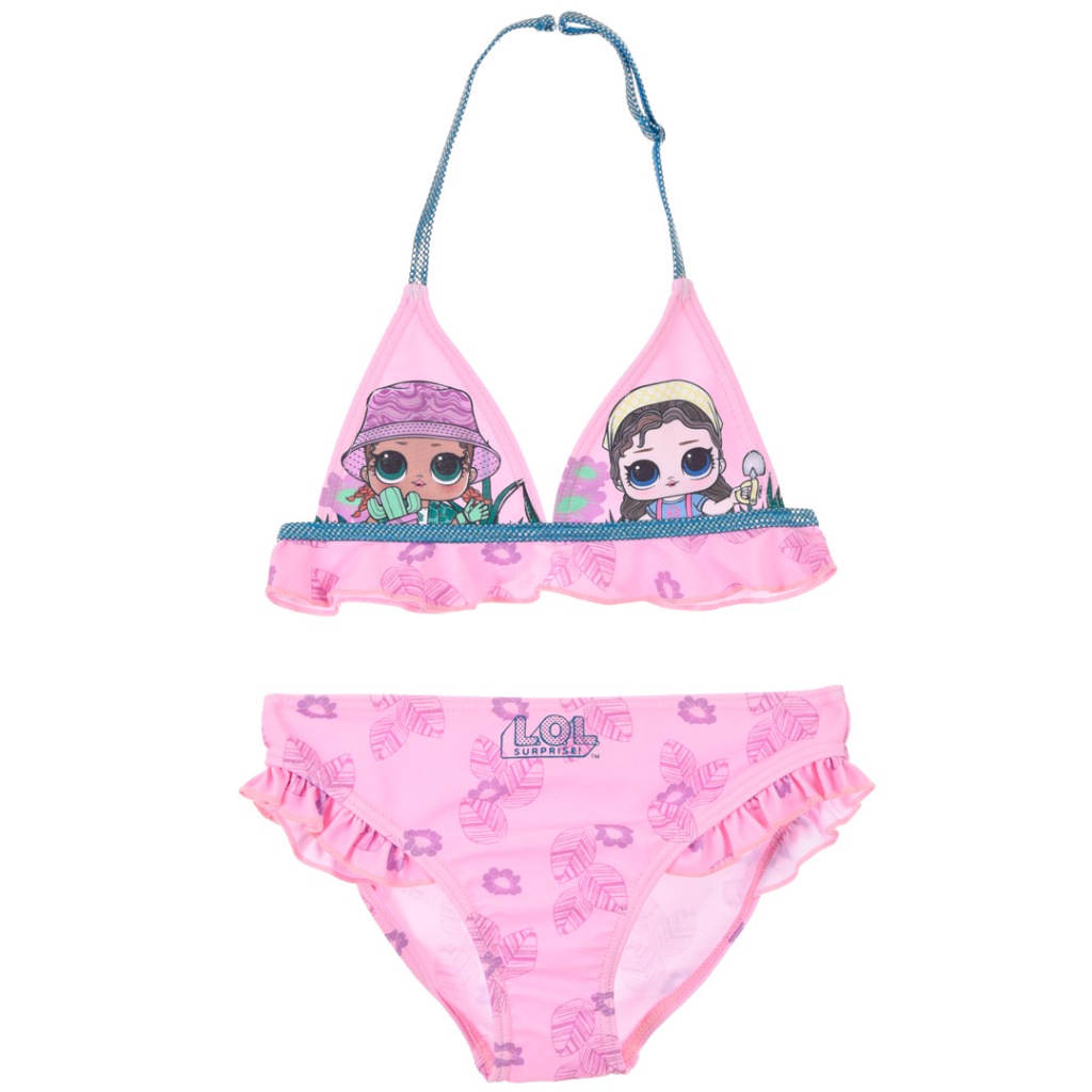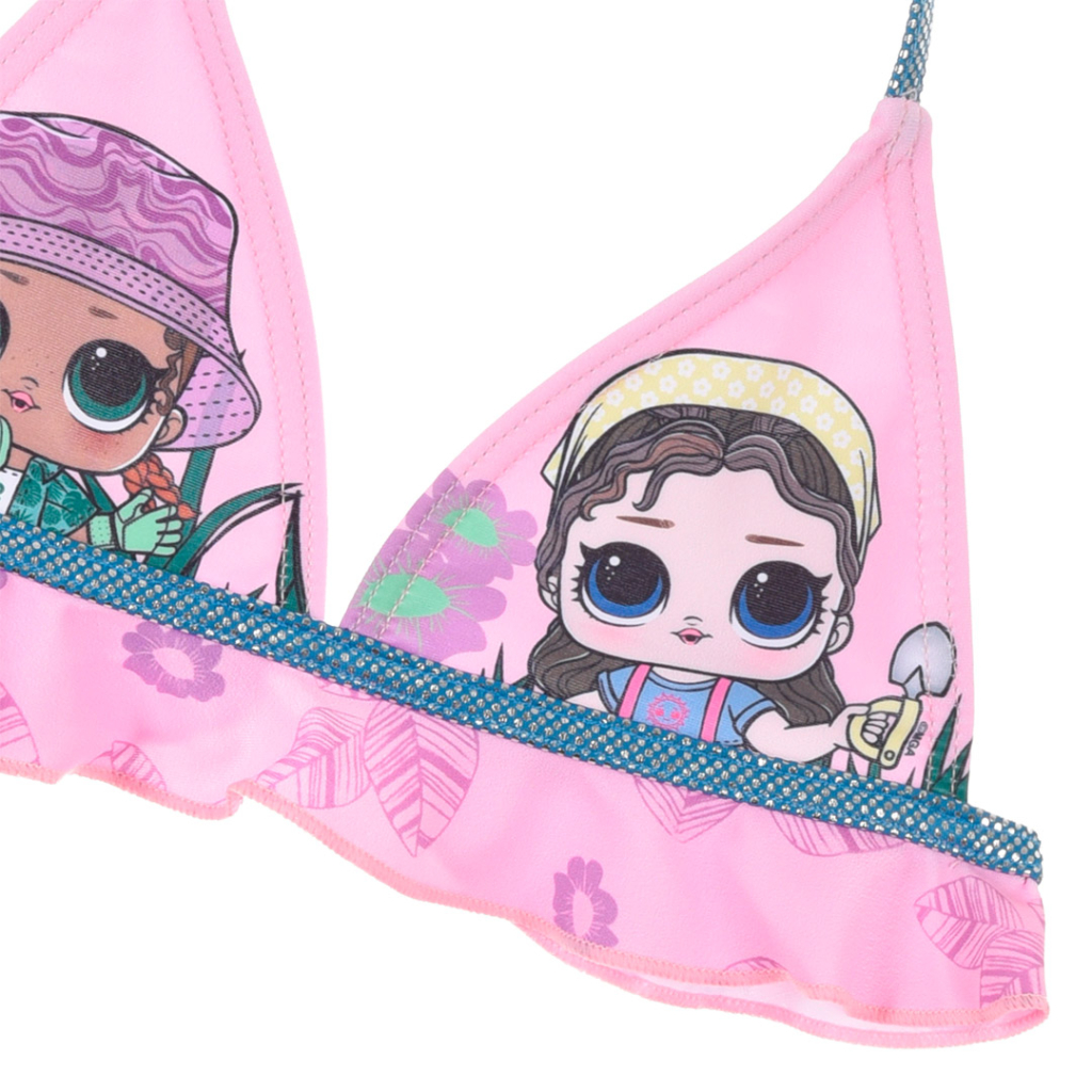 Dvojdielne dievčenské plavky s bábikami L.O.L.SURPRISE. Vrchný diel so zapínaním vzadu, ramienko za krk má nastaviteľnú dĺžku. Nohavičky s volánikmi.Dodatočné parametre