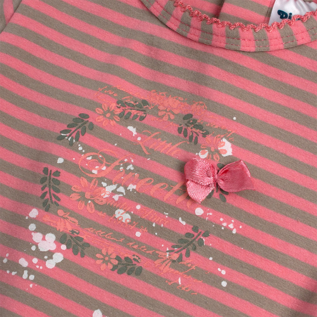 Krásna súpravička pre dievčatá. Tričko s dlhým rukávom, s potlačou. Zapínanie vzadu na patentky. Jednofarebné tepláčiky. Veľmi príjemný, mäkký a pružný materiál.Dodatočné parametre