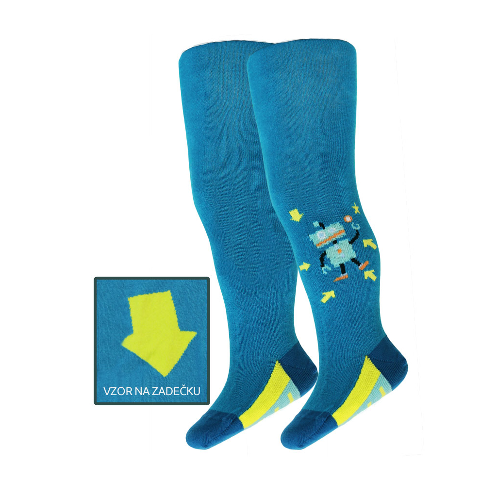 Detské pančuchy s vypleteným vzorom robotov. Príjemný elastický materiál, dobre držia tvar a nevyťahujú sa. Rozšírený sed. Certifikát OEKOTEX100, class 1.Dodatočné parametre