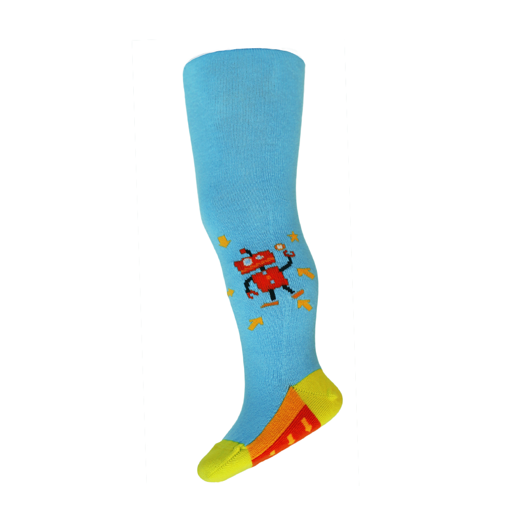Detské pančuchy s vypleteným vzorom hravých robotov. Príjemný elastický materiál, dobre držia tvar a nevyťahujú sa. Rozšírený sed. Certifikát OEKOTEX100, class 1.Dodatočné parametre
