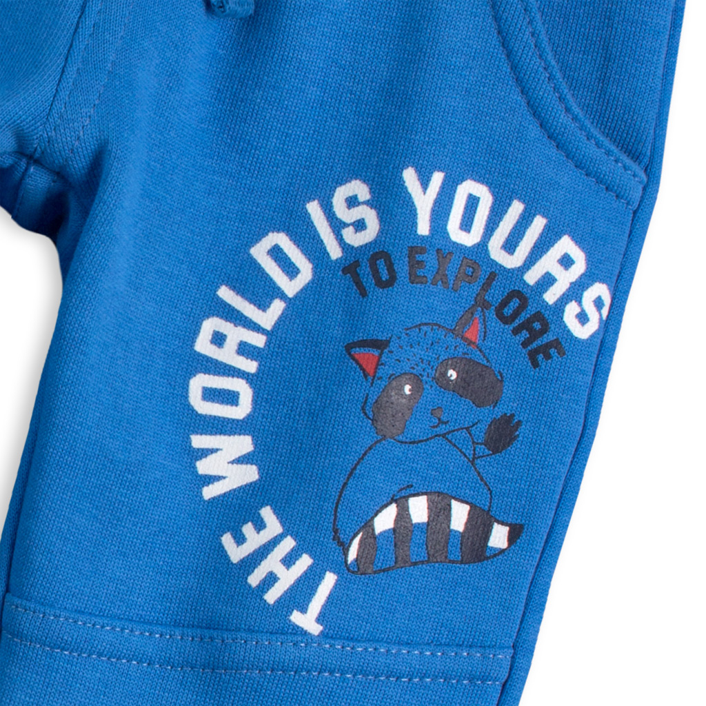 Chlapčenské tepláčiky s roztomilou potlačou. V páse guma a šnúrka na stiahnutie. Funkčné vrecká. Pružný úplet, na rube bez chĺpku. Certifikát OEKO-TEX.Dodatočné parametre