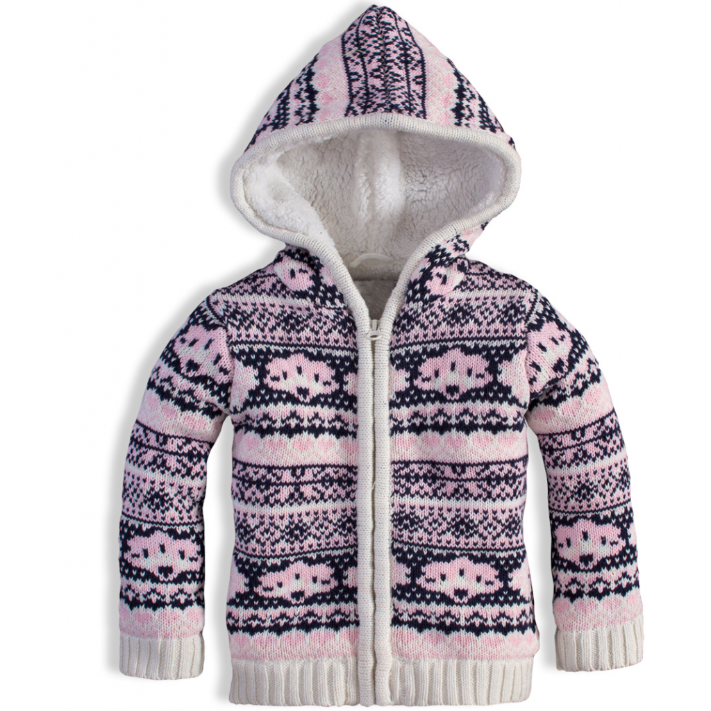 Dievčenský dojčenský sveter s kožušinkovou podšívkou. V rukávoch šuštiak pre ľahšie obliekanie. Zapínanie na zips.Dodatočné parametre