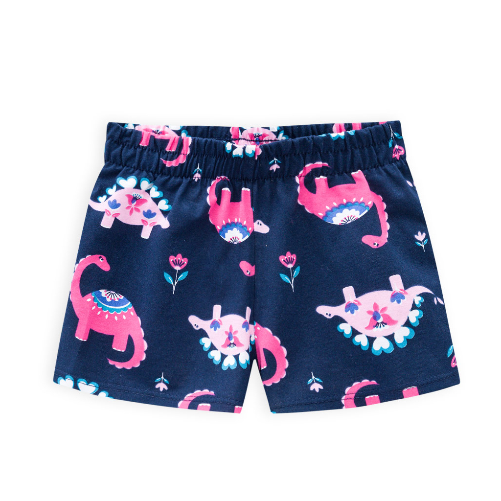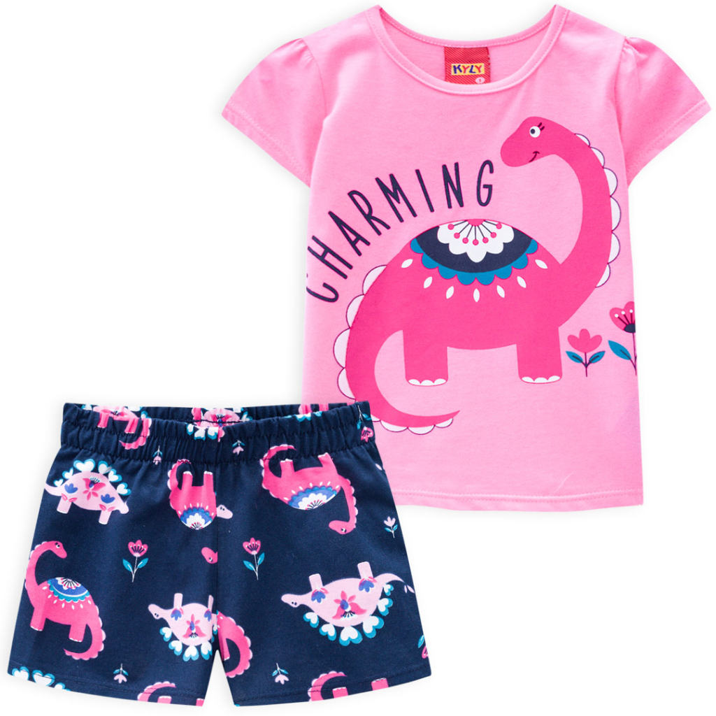 Krásna letná súprava pre dievčatá. Tričko s krátkym rukávom a pohodlné šortky. Veselá, farebná potlač na bavlnenom úplete. Vyrobené v Brazílii.Dodatočné parametre